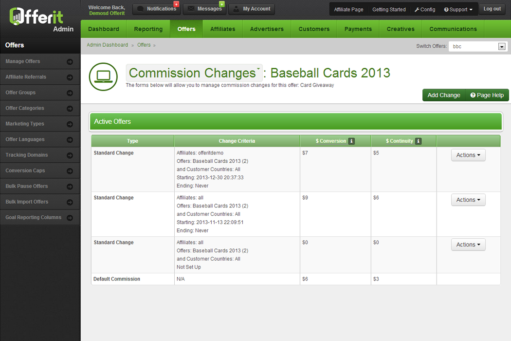 - Promotional Commissions: Offer higher commissions for an offer during a promotional period, or to simply increase the attention for a specific offer. Promotional commissions are extremely flexible and can be applied to all or only specific affiliates, and can run for any time period.