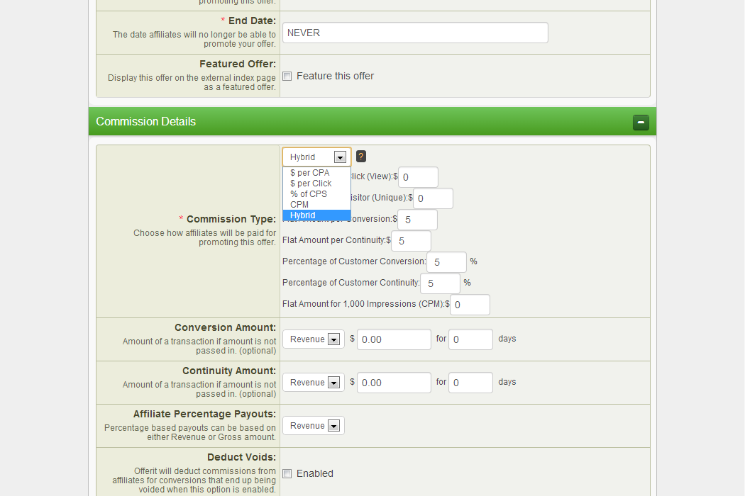 Offerit provides multiple types of commissions for your offers to meet all of your needs. They include: