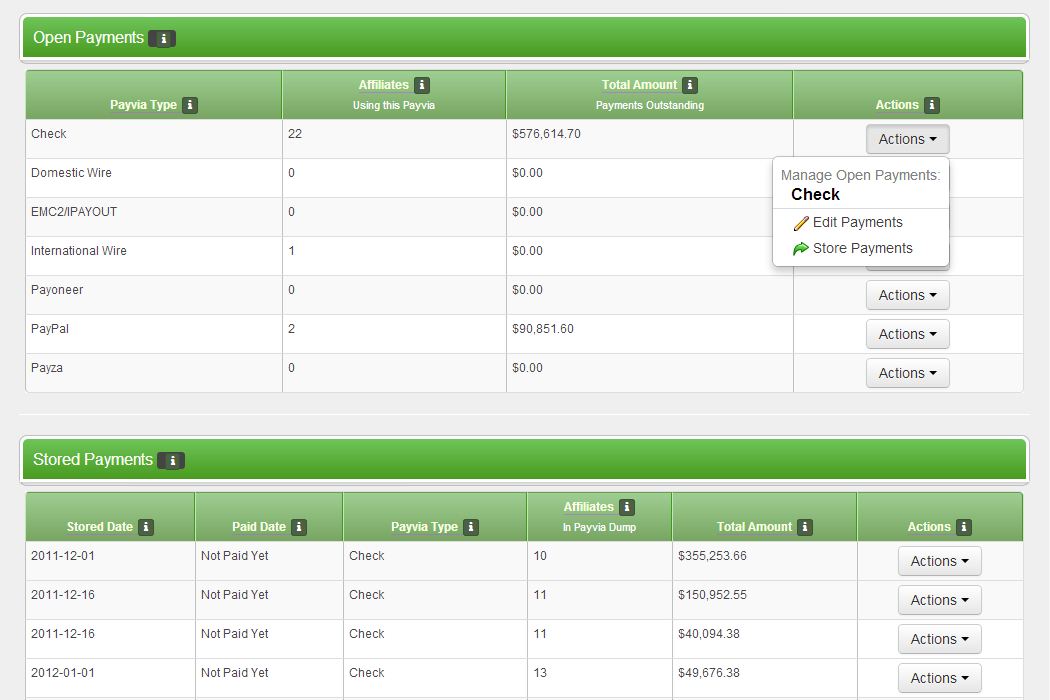 Along with specific payout periods, you can set multiple ways to actually pay your affiliates. These are called Payvia Types: