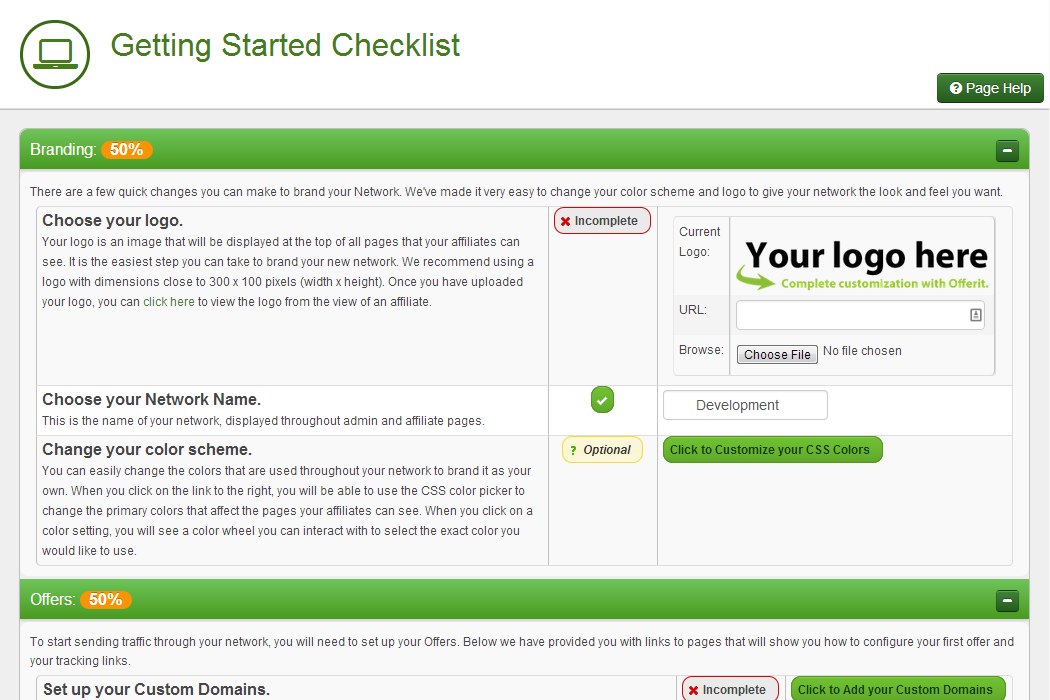 Each Offerit installation comes with a detailed Getting Started Guide that will help you set up your new system. This includes branding your Offerit with your own logo and colors scheme, adding your first offer, and ensuring your contact information is ready for the big time!